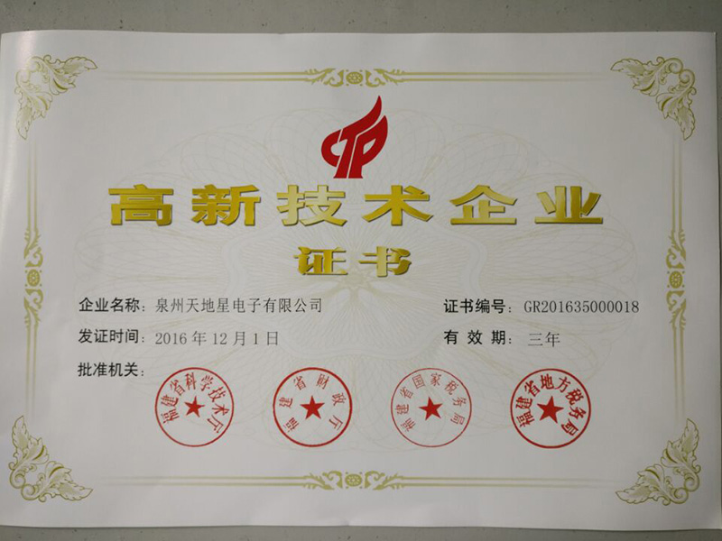 2016高新技術(shù)企業(yè)證書